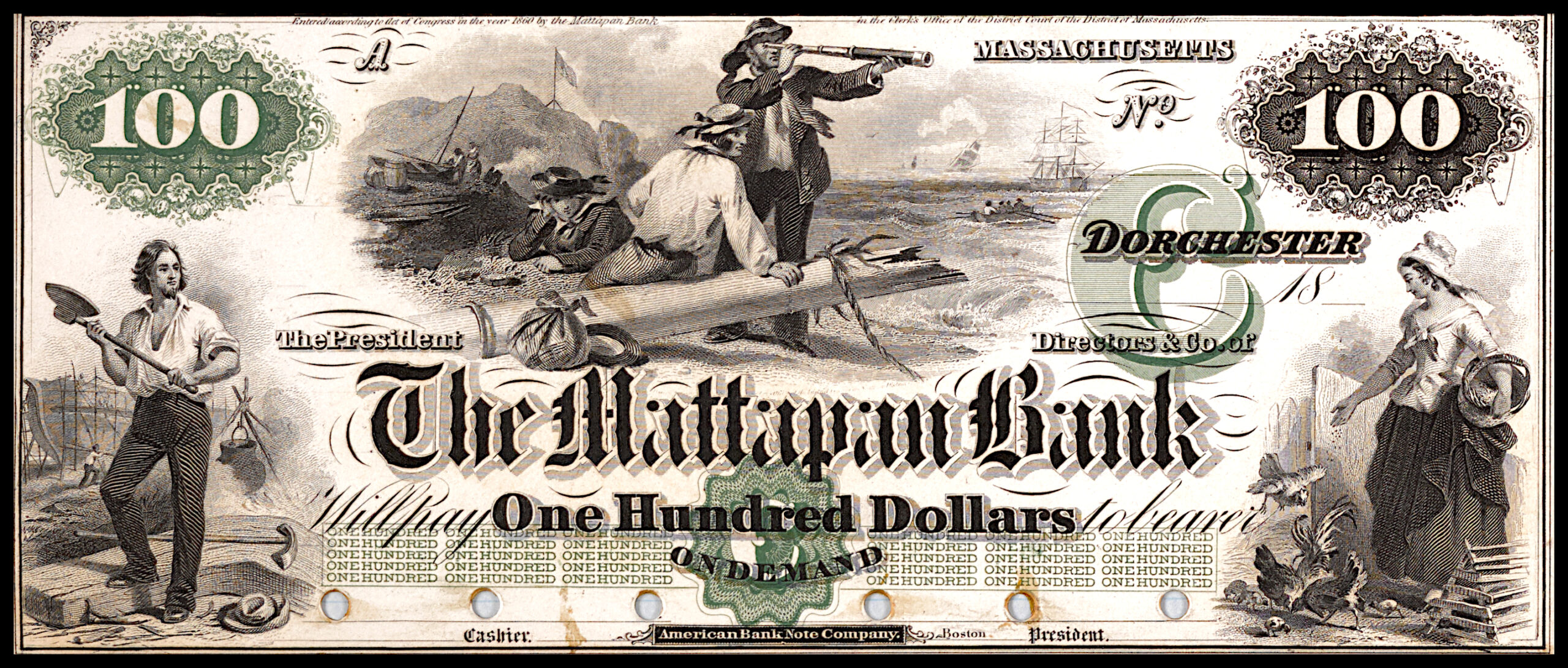 Mattapan Bank 100 Dollars Boston Check 1800’s w/Sample