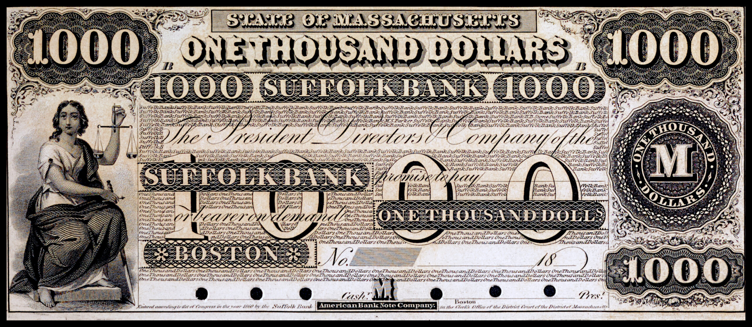 Suffolk Bank $1000 Note w/Sample